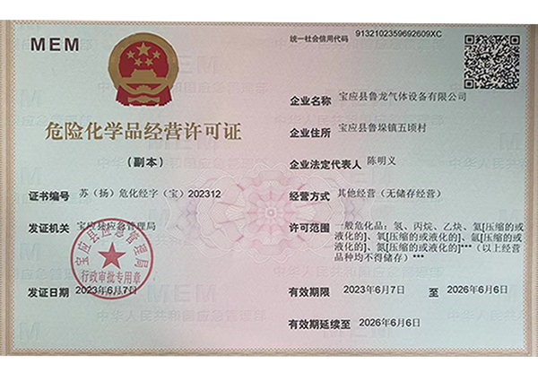 經(jīng)營許可范圍:一般; (充裝):氬[壓縮的或液化的]、氧[壓縮的或液化的]、氮[壓縮的或液化的]、二氧化碳[壓縮的或液化的]一般危化品:丙烷、乙炔、氦[壓縮的或液化的]、